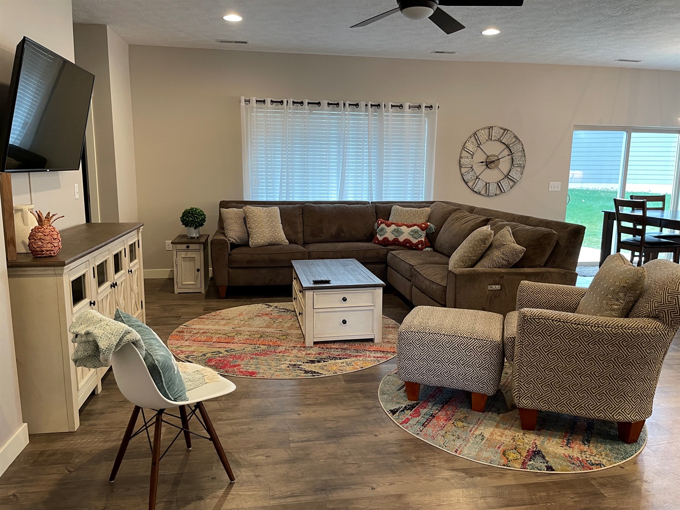 Your stay includes 6 daily passes to the Bridges Bay indoor/outdoor (seasonal) waterpark, plus access to all resort amenities-outdoor pools, stocked fishing pond, basketball court, playground and 2 on-site restaurants. Whether you're enjoying morning coffee on the patio or gathering in the open-concept living area, this cabin is designed for memorable Okoboji vacations.