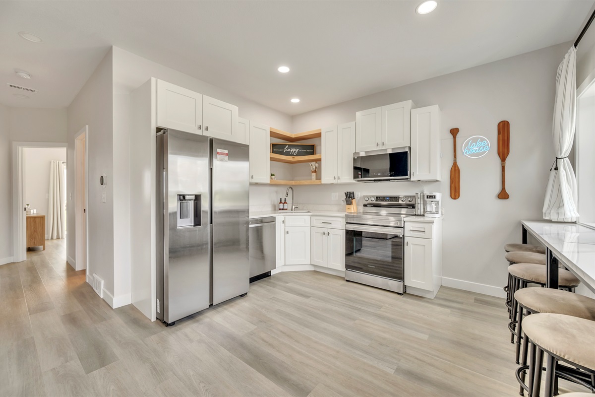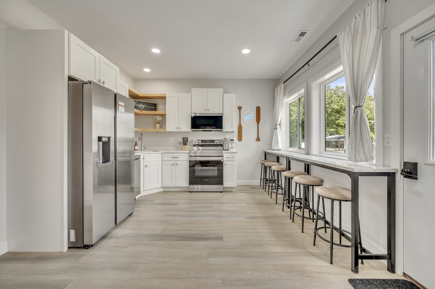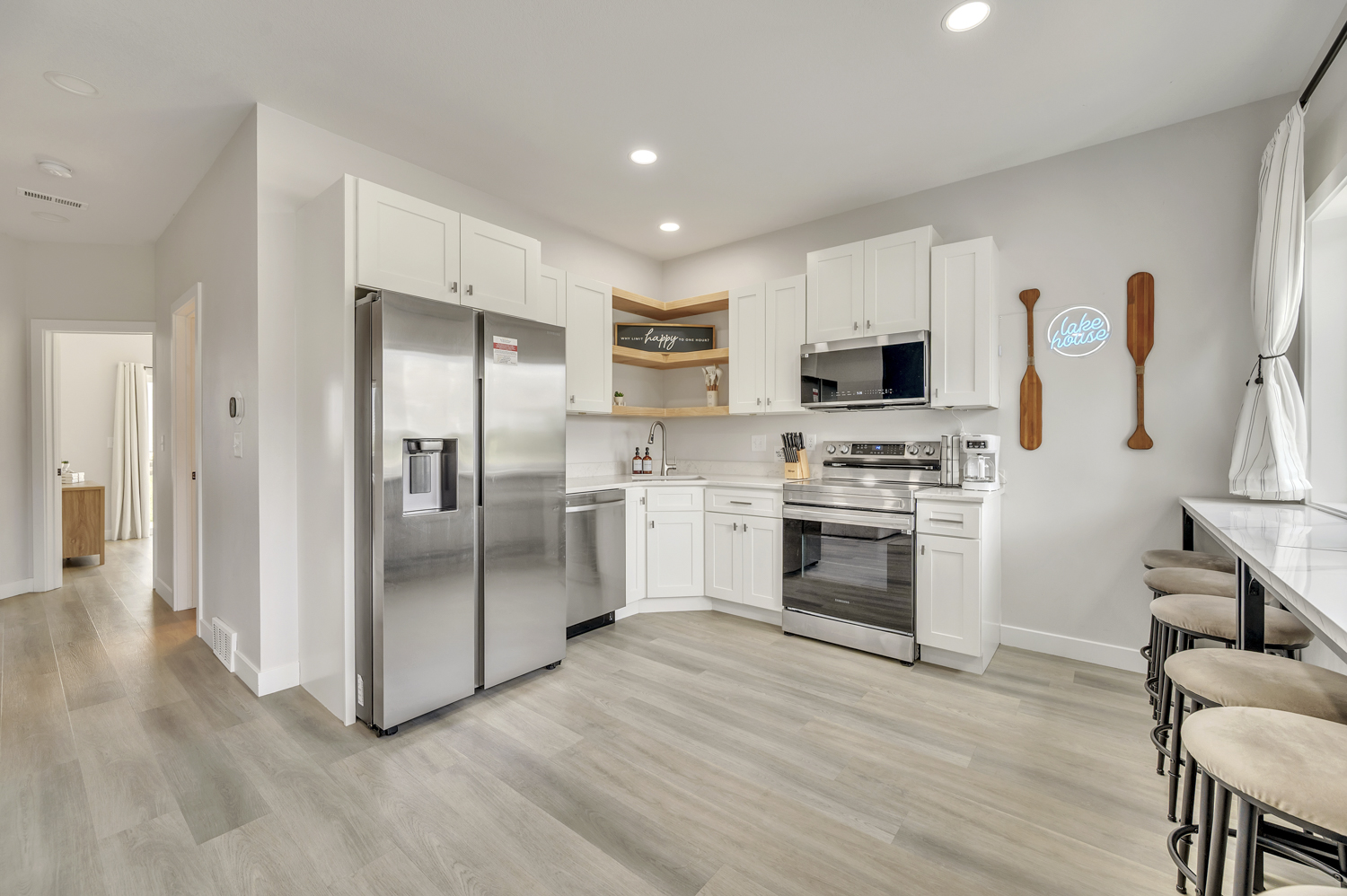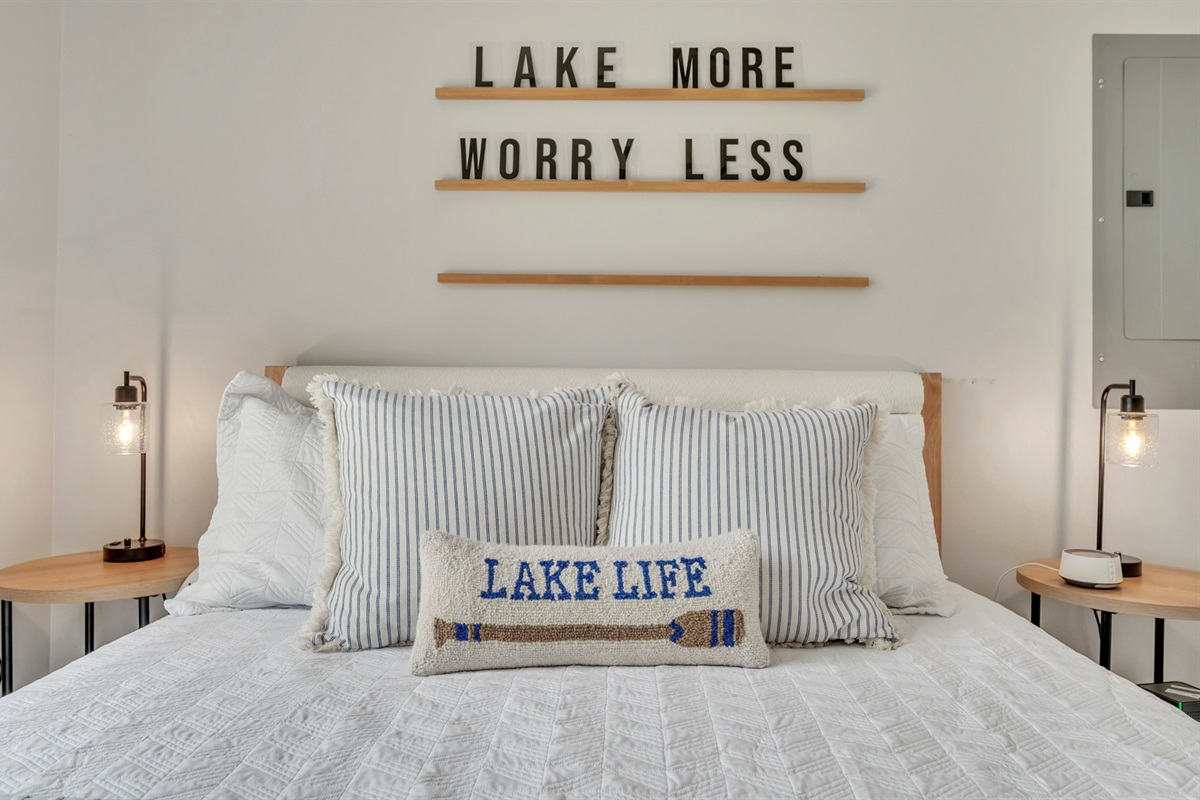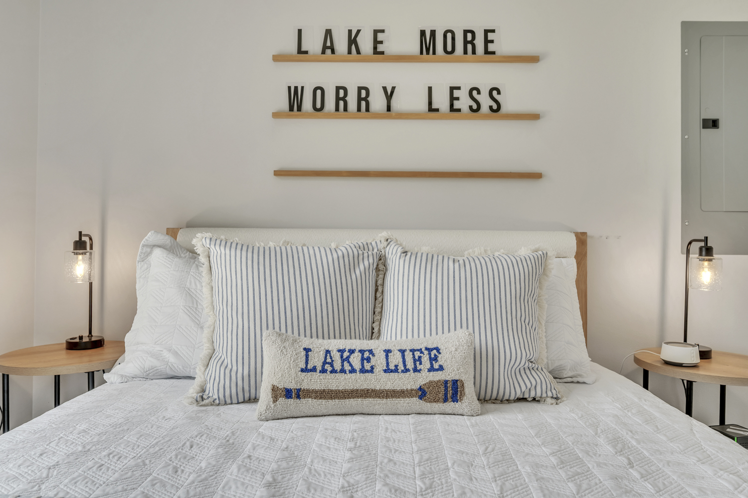 3 Bedrooms • 1 Bathroom 1 Bath • Sleeps 4-6A park sits just steps away—perfect for morning walks, kids’ playtime, or watching the sunrise over the water. Whether you're planning a family trip, a friends’ weekend, or a quiet retreat, this cabin provides a simple and inviting place to settle in and enjoy lake life.