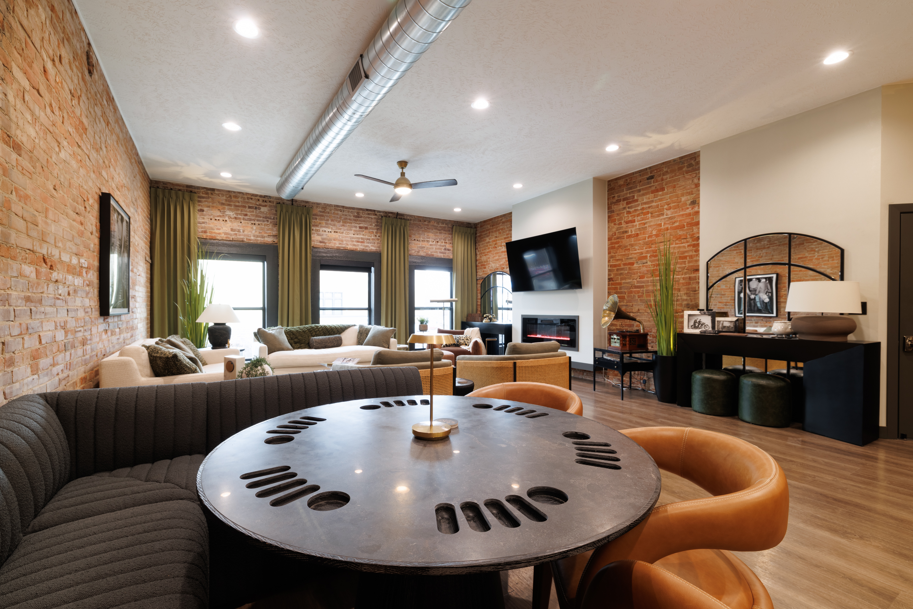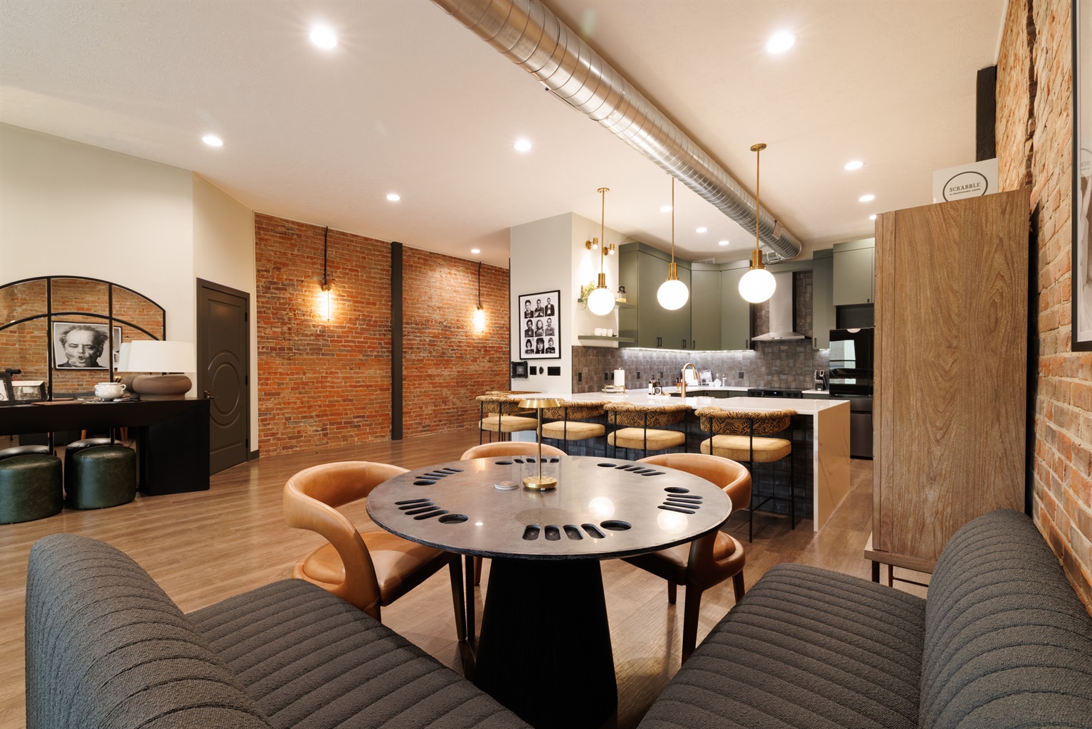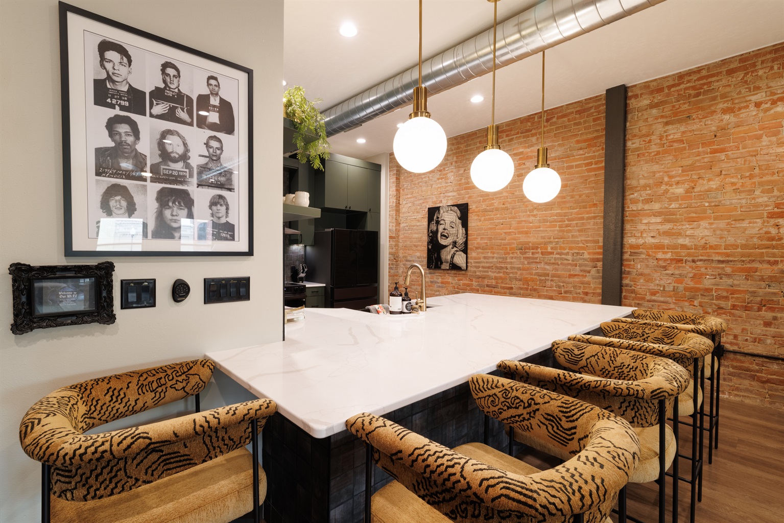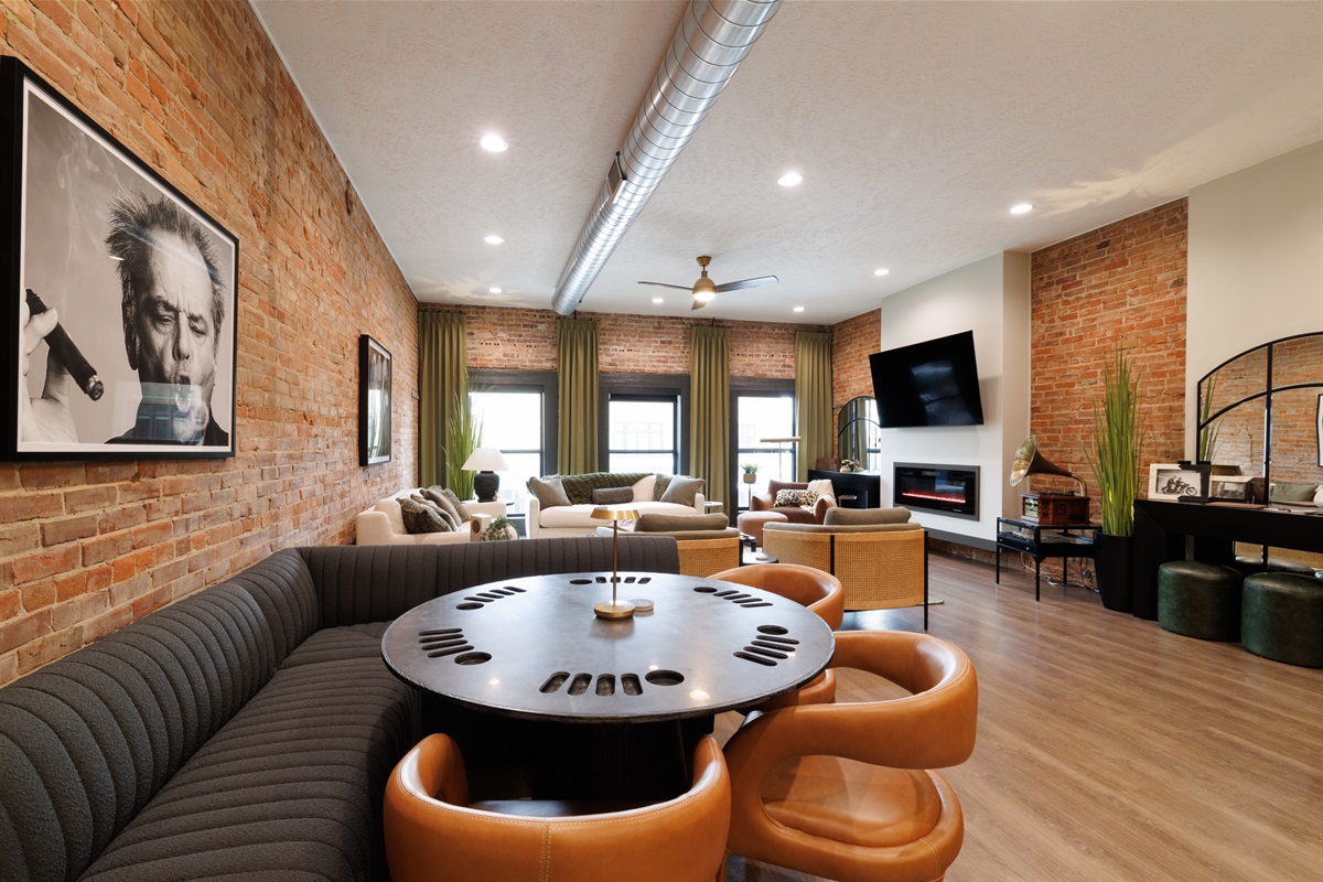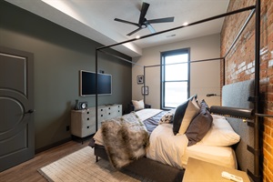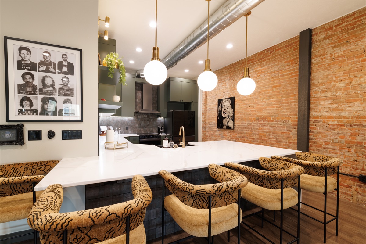 2 Bedrooms • Sleeps 5-6Step inside and you’ll immediately notice the warm, inviting design with exposed brick, modern finishes, and an open-concept layout that’s ideal for gathering. Whether you’re enjoying a cozy night in or hosting friends and family, this space was made for entertaining. The comfortable seating areas, unique dining space, and ambient fireplace create the perfect atmosphere to relax and unwind.