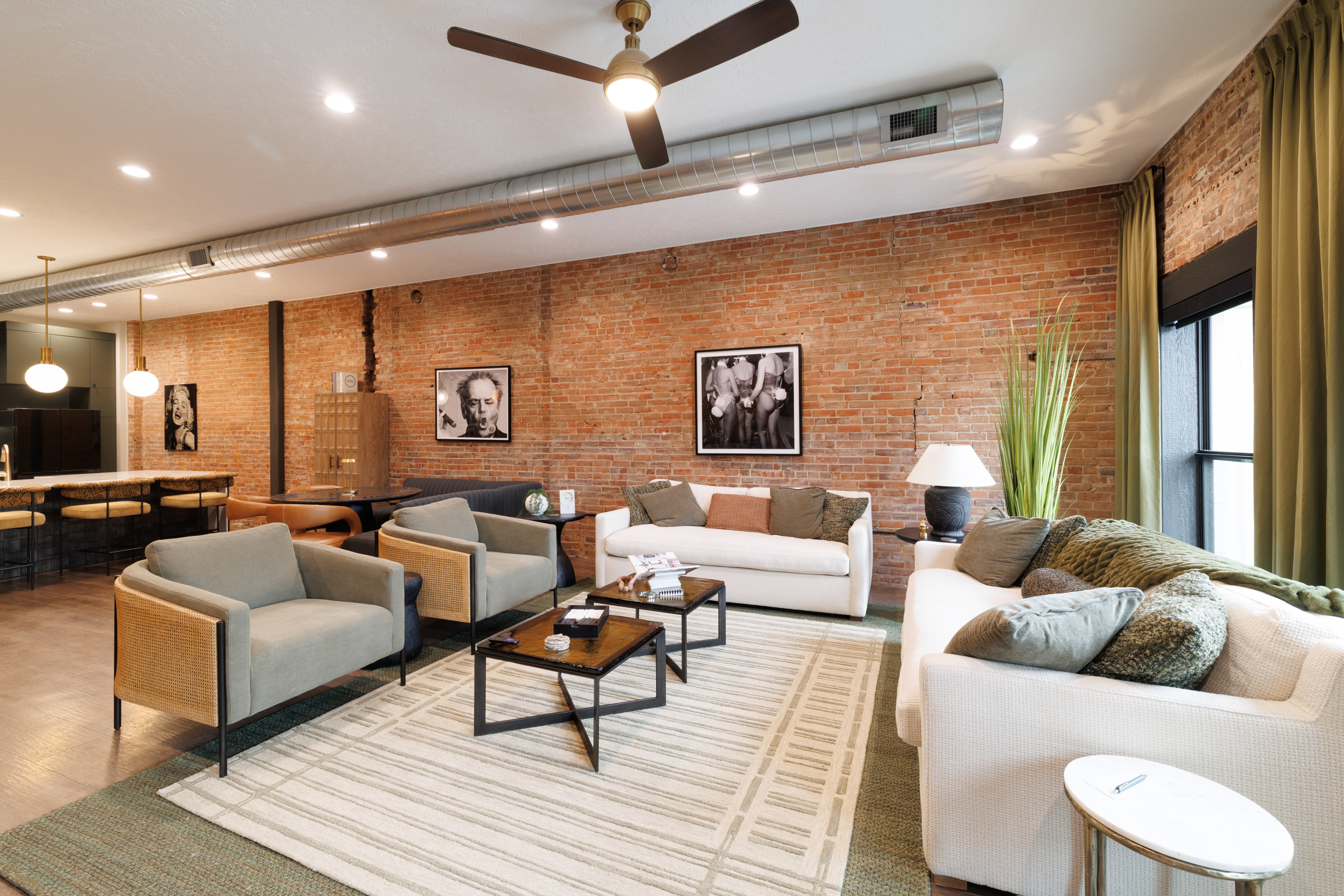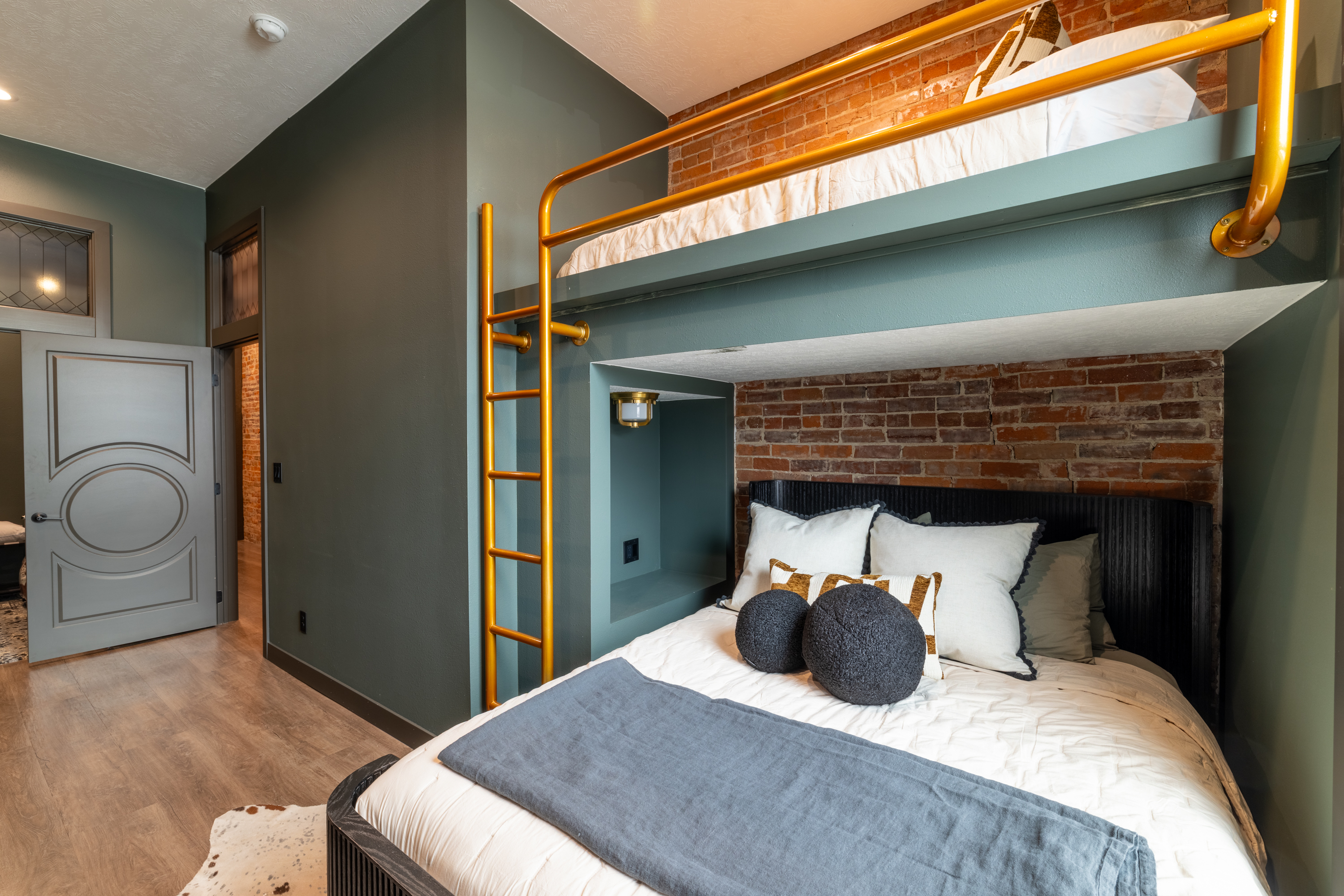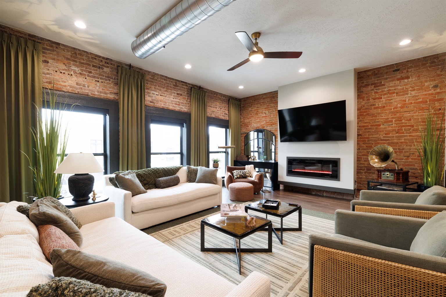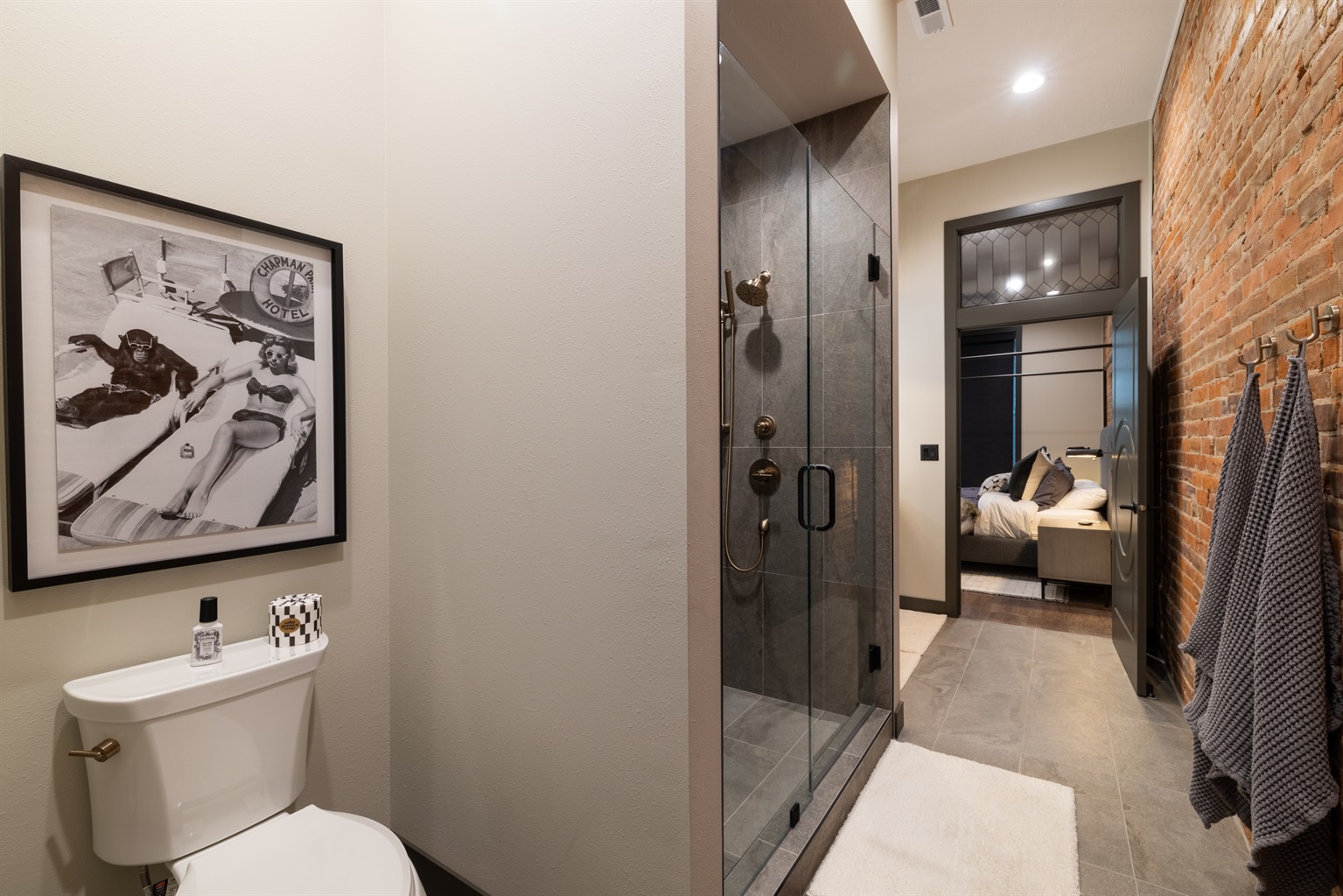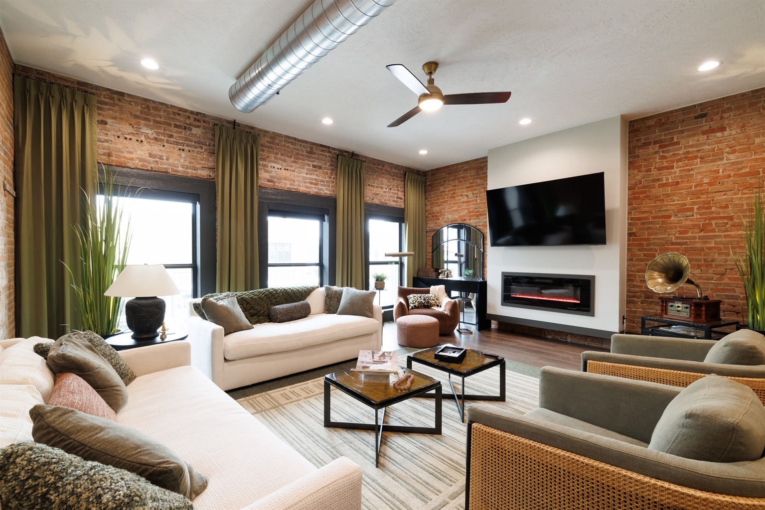 2 Bedrooms • Sleeps 5-6Step inside and you’ll immediately notice the warm, inviting design with exposed brick, modern finishes, and an open-concept layout that’s ideal for gathering. Whether you’re enjoying a cozy night in or hosting friends and family, this space was made for entertaining. The comfortable seating areas, unique dining space, and ambient fireplace create the perfect atmosphere to relax and unwind.